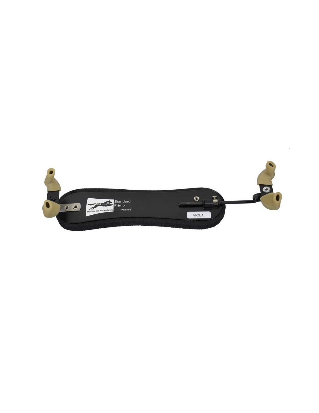 The main part of the shoulder rest is made of comfortable rubber, untop of that the aluminum plating wich makes it possible for the player to shape the rest to their own shape and allowing them to play with their own ergonomics. Delivered with this rest are two plastic spacing tubes wich allow the arms to be stable when put into the highest position.