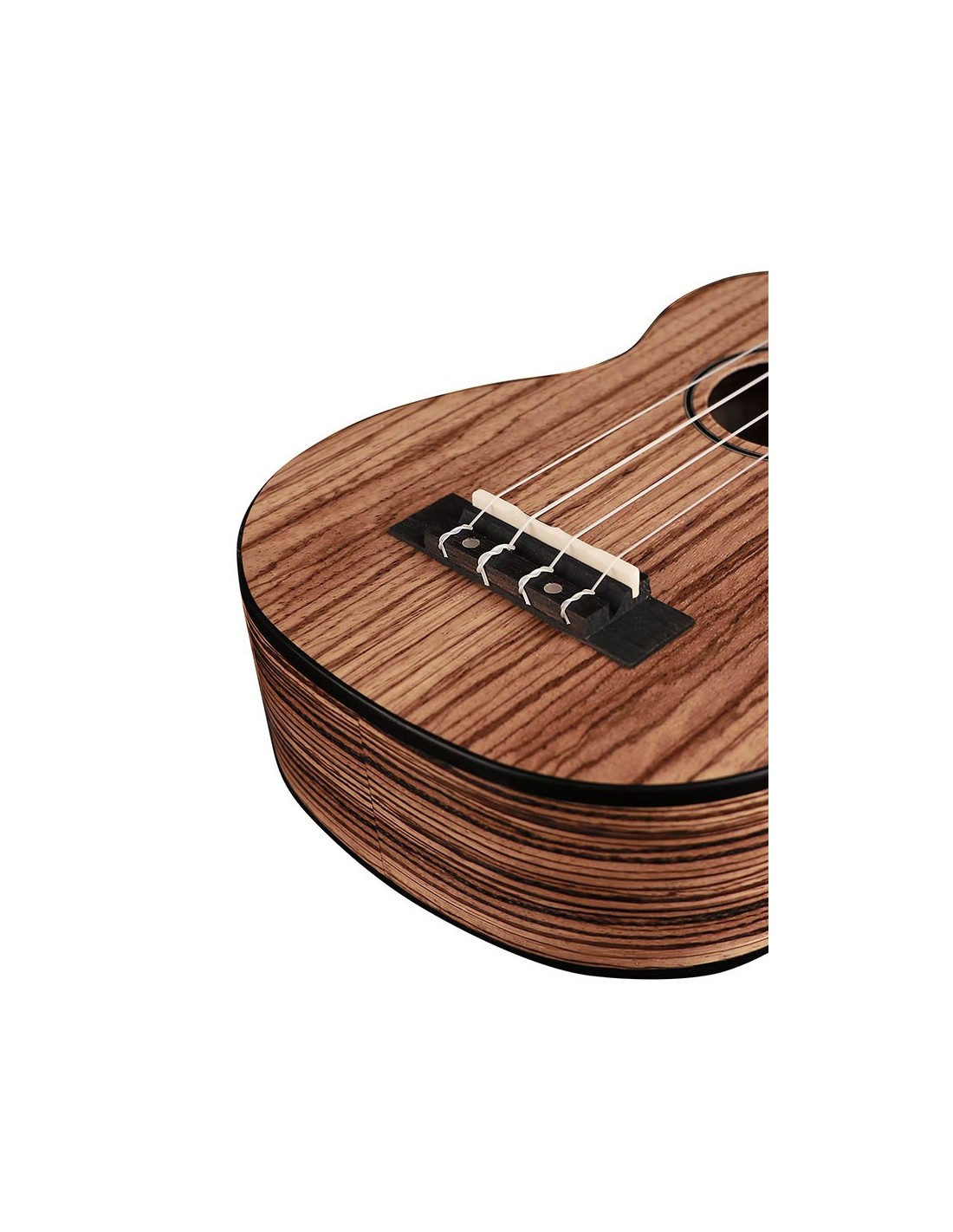 This soprano ukulele is made from the exotic zebrano wood. Very stable tone wood that sounds loud and clear. The high quality open geared machine heads are light weight and will keep your ukulele perfectly in tune. Aquila strings