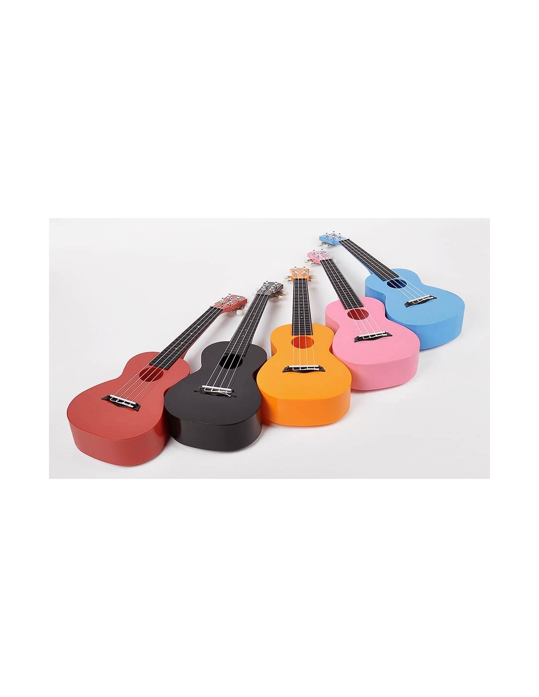 The fingerboard is moulded ABS with integrated frets. This is superior to the rough painted wooden fingerboards that you commonly see on other cheap coloured ukuleles. Another advantage of the fingerboard is that it is precision made and moulded in one piece, so no badly laid or rough frets and great accurate intonation up the neck.