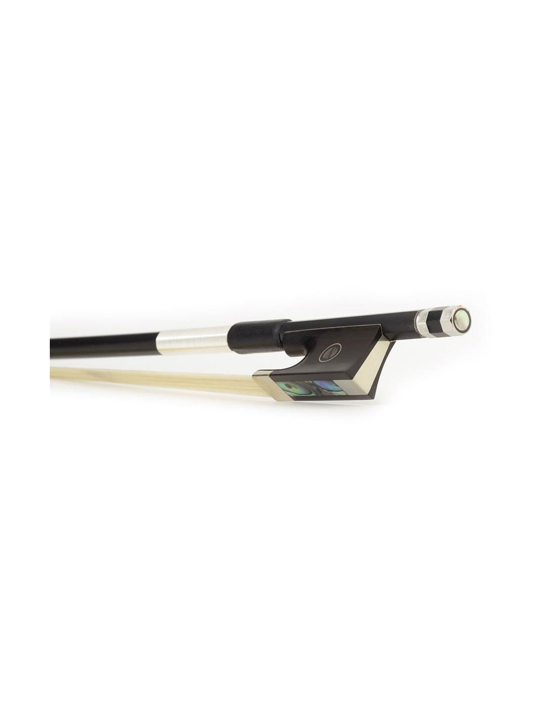 violin bow,1/4, carbon fiber/black, round, ebony frog, parisian eye, fully nickel mounted