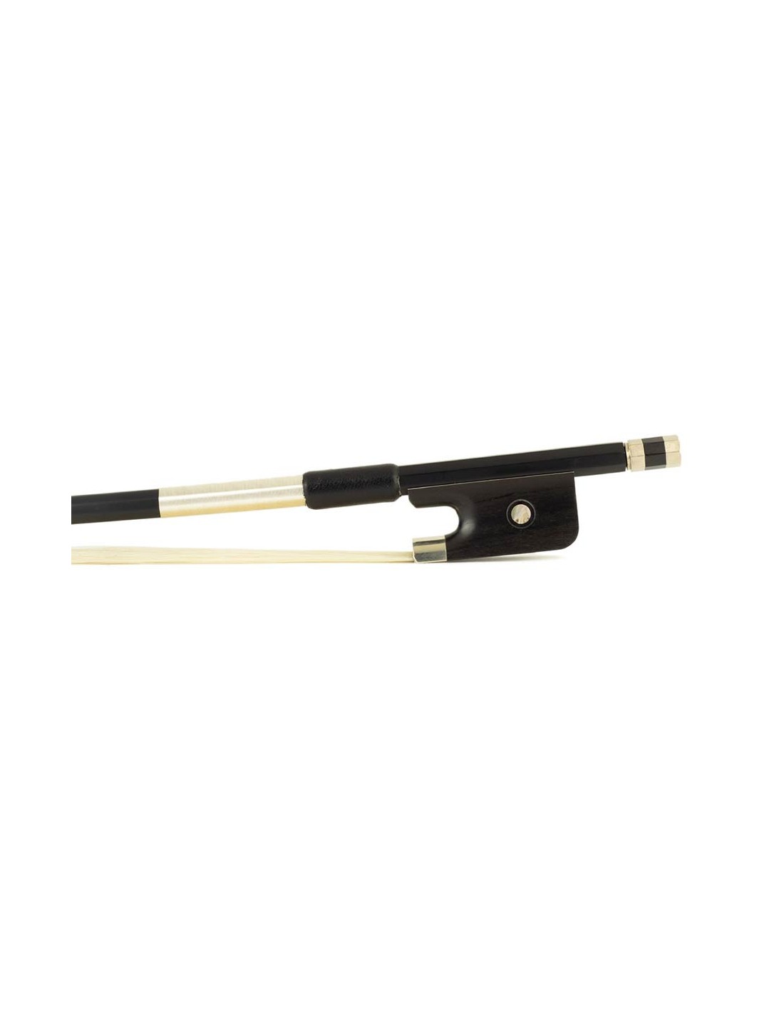 cello bow, 1/2, carbon fiber/black, round, ebony frog, parisian eye, fully nickel mounted