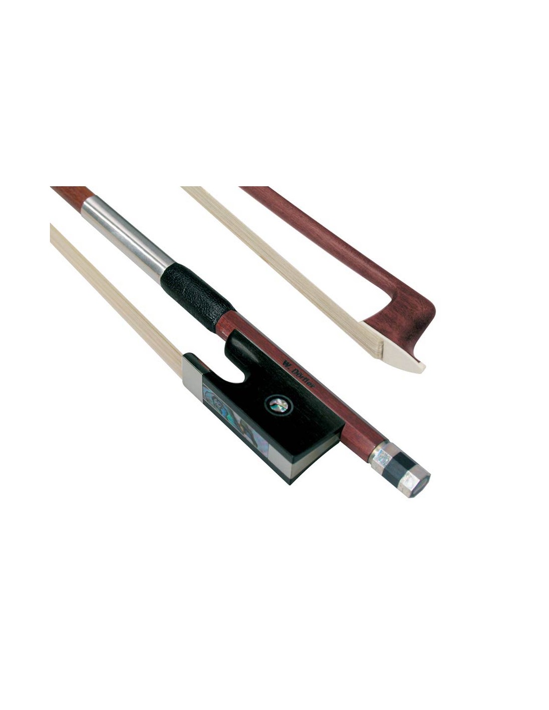 For highly demanding, high-level musicians. Top-of-the-range pernambuco stick, 30 years of impeccable storage and dried. Excellent elastomechanic qualities. Fine details such as the nickel-silver mounted slide and a three-piece button with eye make this bow a real jewel. A bow is for the musician as important as the instrument that he wants to bring to life. The sound quality of a string instrument can only be achieved when both components fully harmonize.