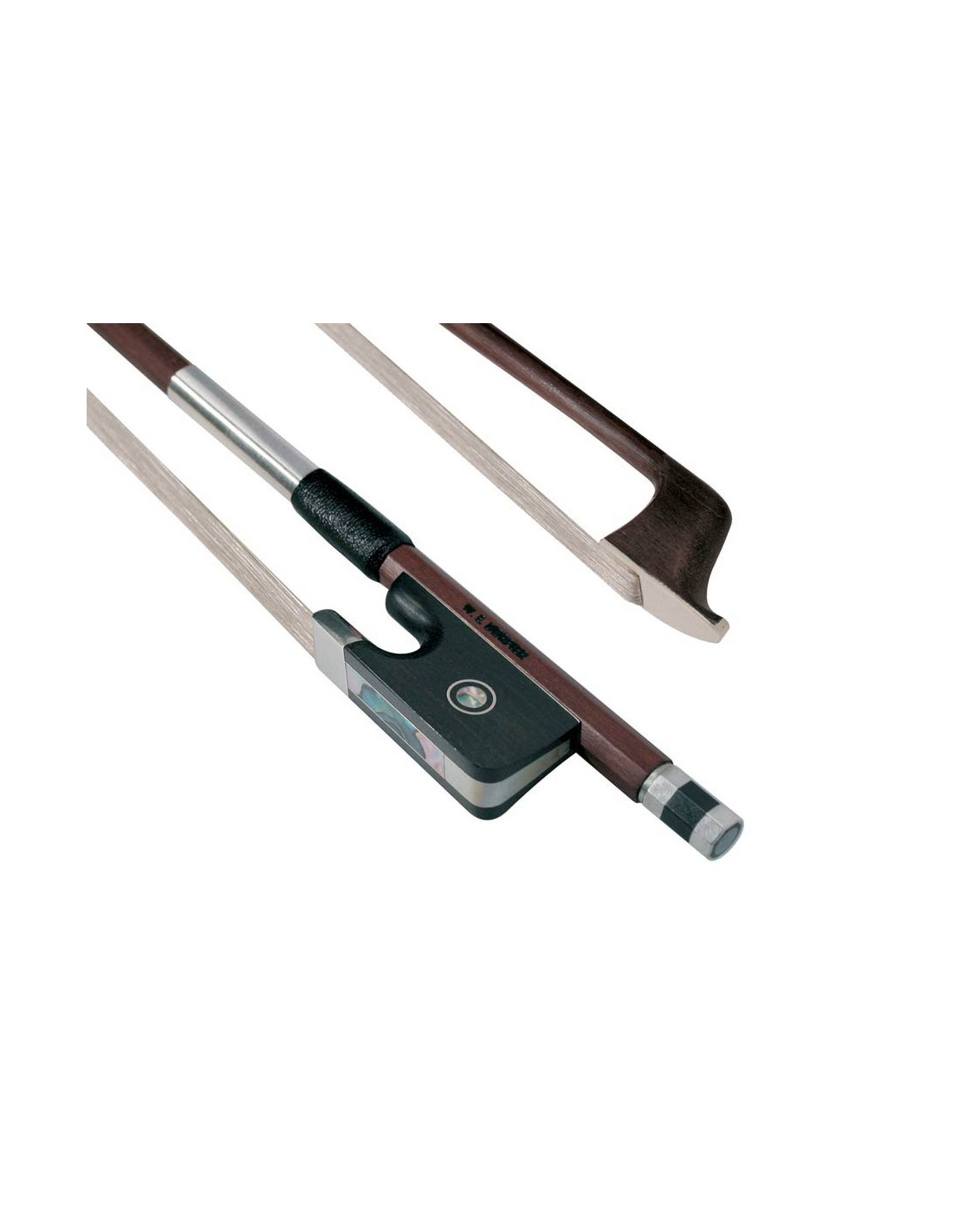 For highly demanding, high-level musicians. Top-of-the-range pernambuco stick, 30 years of impeccable storage and dried. Excellent elastomechanic qualities. Fine details such as the nickel-silver mounted slide and a three-piece button with eye make this bow a real jewel. A bow is for the musician as important as the instrument that he wants to bring to life. The sound quality of a string instrument can only be achieved when both components fully harmonize.