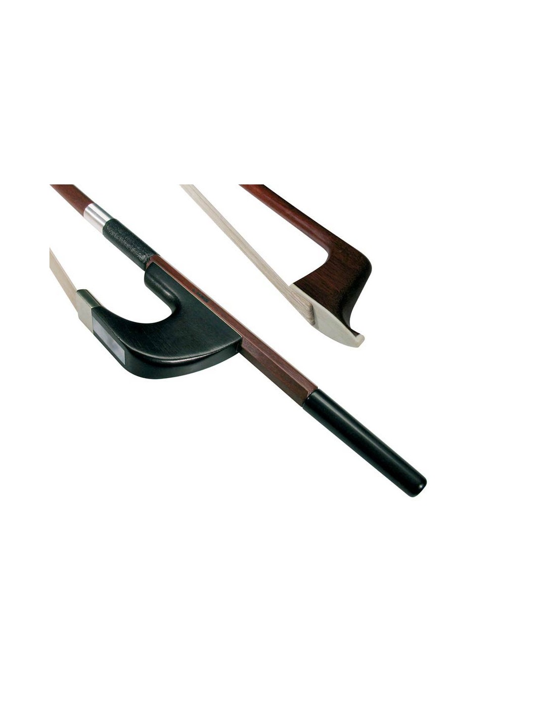 Dörfler's Brazilwood bows are a matter of fact. Here an optimally finely adapted trio is put to use: Massaranduba for the stick, genuine ebony from tropical Africa for the frog and finest mother of pearl or iris for the eyes and slides.