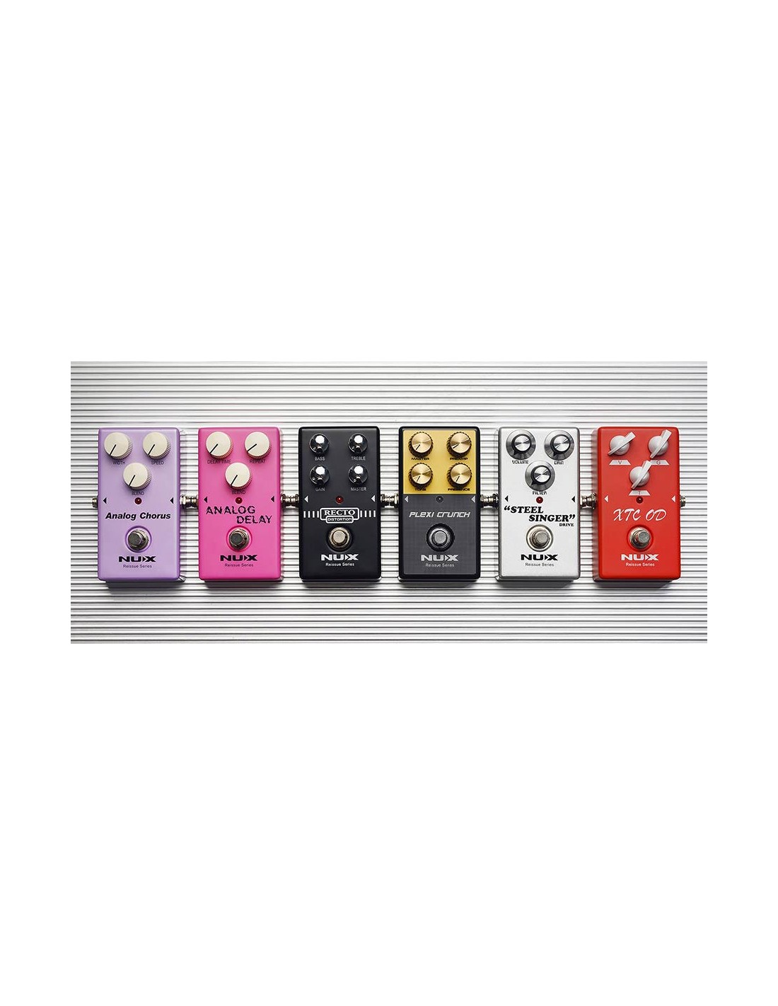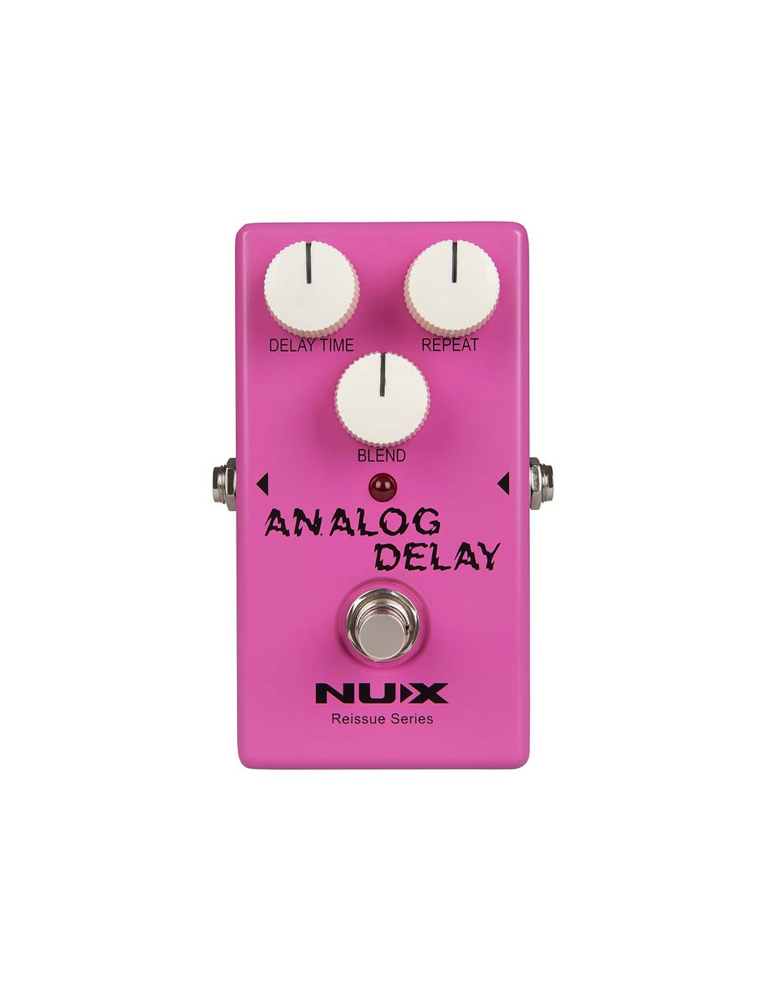 The NUX analog delay pedal from the Reissue series has 100% analogue circuitry with 3205 and 3102 BBD chips. It gives you the warm sounding analog delay effect from the 80's. Experiment with the effect by turning up the number of repeats and tweaking the delay time knob!